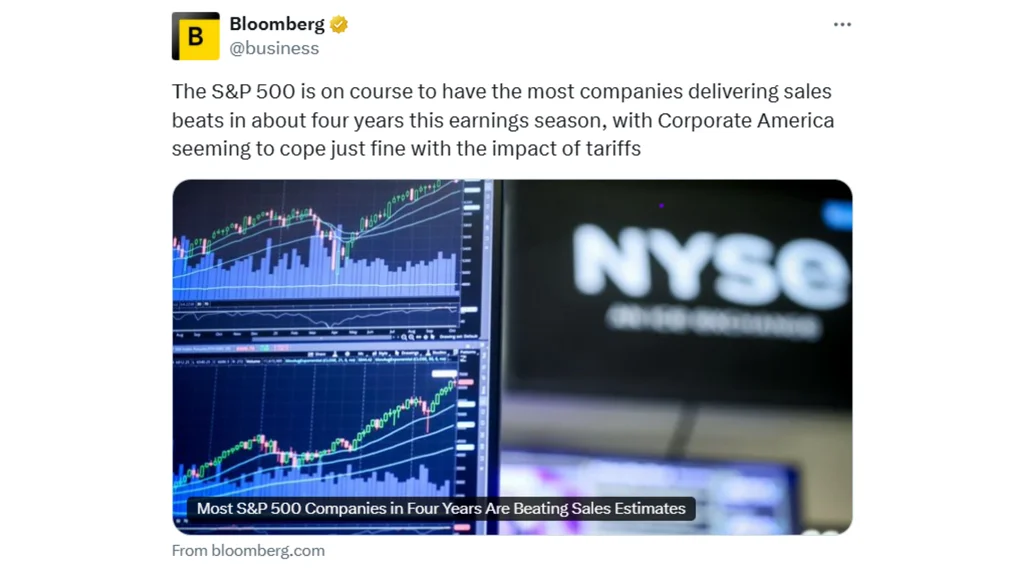 The results suggest that corporate earnings have held up despite a shaky world economy, tariffs and inflation.