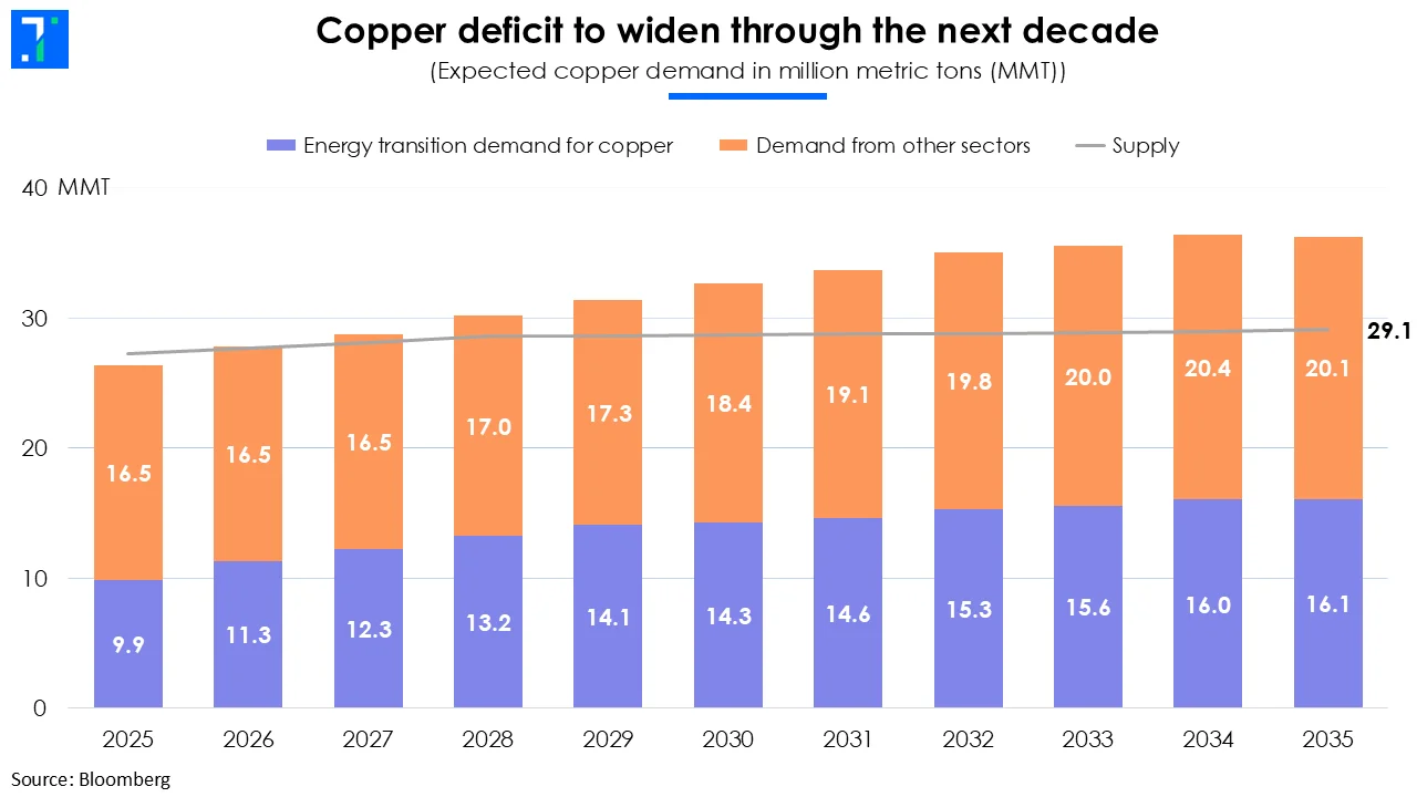 Supply is struggling to respond. High energy costs and environmental regulations cap smelter output in China and Europe. Aging mines in Chile and Peru face declining ore grades, forcing miners to process far more rock to produce the same output as two decades ago.